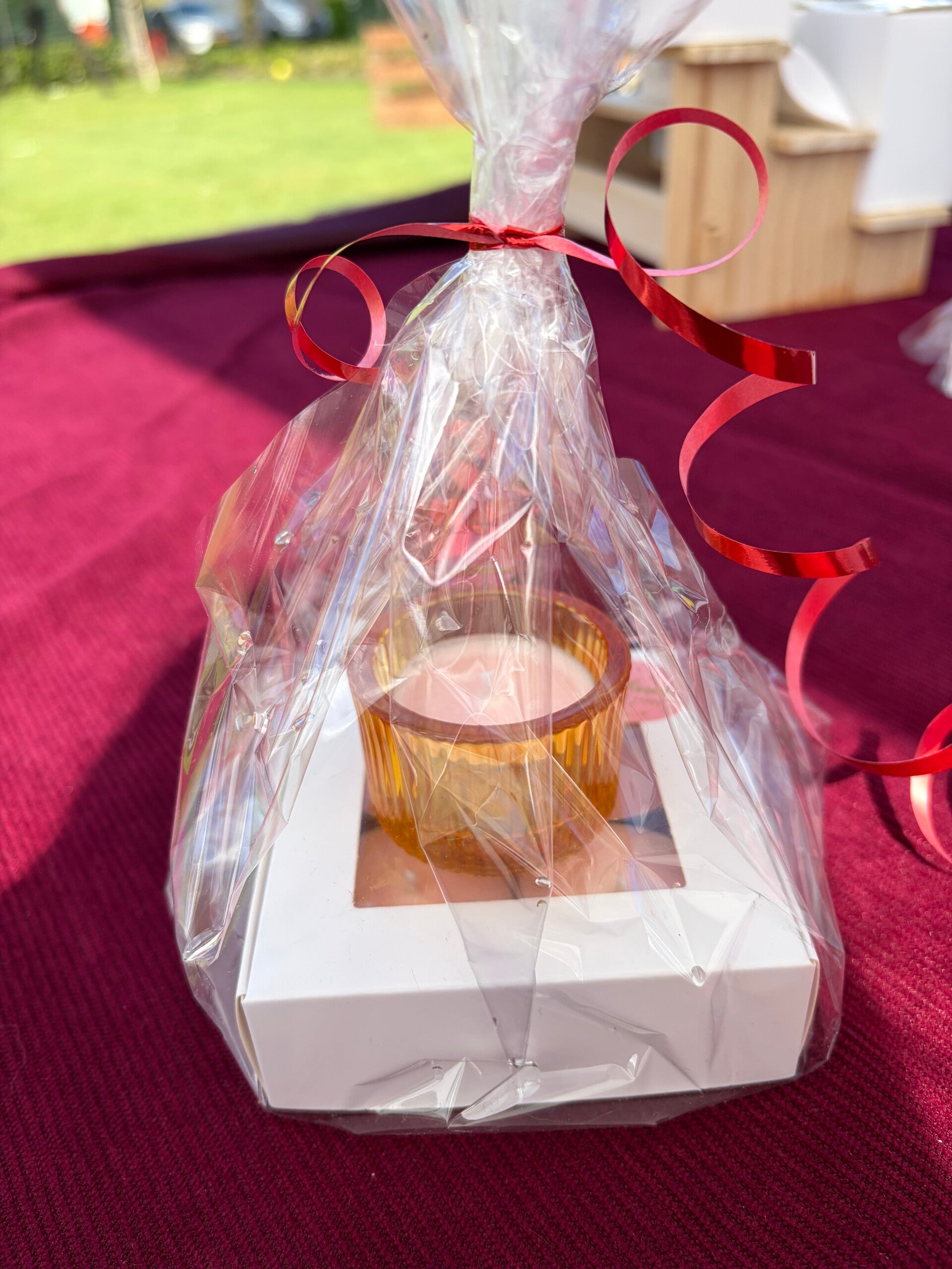Mooi ingepakt in folie met cadeaulint.